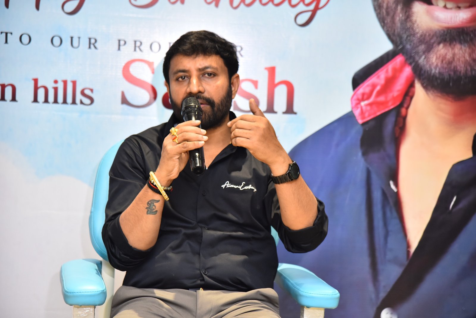 ఈ సందర్భంగా సెవెన్ హిల్స్ సతీష్ ప్రెస్‌మీట్‌లో మరిన్ని విషయాలు మాట్లాడుతూ..‘‘నేను మీడియా ముఖంగా ఎప్పుడూ బర్త్ డే చేసుకోలేదు. నా ఫ్రెండ్స్ నాకు సర్‌ప్రైజ్ ఇచ్చారు. తప్పకుండా బర్త్ డే చేసుకోవాలని సూచించారు. మూడు సినిమాల నిర్మాణంలో ఎన్నో విషయాలు నేర్చుకున్నా. అన్ని క్రాప్ట్‌లకు సంబంధించి విషయాలు నేర్చుకున్నాను. వయసులో ఉన్నప్పుడే డైరెక్షన్ చేయాలని వీవీ వినాయక్ గారు చెప్పడంతో డైరెక్టర్‌గా మారుతున్నా. నార్నె నితిన్ డేట్స్ అలాగే ఉన్నాయి. కథ ఓకే అయితే ఆయనతో సినిమా చేస్తాను. కంటెంట్ ఓరియెంటెడ్ సినిమా చేయాలని ప్రయత్నిస్తున్నా. డైరెక్టర్‌గా డెబ్యూ మూవీ అనేది చాలా ముఖ్యం. మంచి సినిమా చేస్తేనే మన ట్యాలెంట్ ఏంటనేది బయటపడుతుంది. ఆ ప్రయత్నంలోనే ఉన్నాను. ప్రస్తుతం మనం మెసేజ్ ఇస్తే చూసే మూడ్‌లో ఆడియన్స్ లేరు. అందుకే నవ్వించి ఎంటర్‌టైన్ చేస్తేనే ఆడియన్స్ థియేటర్లకు వస్తారు బలగం, లిటిల్ హార్ట్స్‌ వంటి సినిమాలతో అది ప్రూవ్ అయింది. అందుకే తక్కువ బడ్జెట్‌తో మంచి కంటెంట్ ఉన్న సినిమా చేస్తాను. చాలా వేరియన్స్ ఉన్న స్క్రిప్ట్ రెడీ చేస్తున్నా. సినిమా మొత్తం ఎంజాయ్ చేసేలా ఉంటుంది. ఏ సినిమా ఎందుకు హిట్ అవుతుందో ఎవరూ చెప్పలేరు. నిజాయితీగా మన ప్రయత్నం మనం చేసుకుంటూ పోవాలి. నిర్మాతగా బట్టల రామస్వామి బయోపిక్ మంచి డబ్బులు వచ్చాయి. రెండో సినిమా కొత్త ఎక్స్‌పీరియన్స్ ఇచ్చింది. నేను నిర్మించిన మూడు సినిమాలు కూడా కొత్త వాళ్లతో చేశాను. డైరెక్టర్‌గా కూడా కొత్తవాళ్లతో చేసే ఛాన్స్ ఉంది. ఎందుకంటే కొత్తవాళ్లతో చేస్తే డేట్స్ ఇబ్బంది ఉండదు. ఎవరైనా హీరో ఓకే అయినా చేస్తా. వేరే ఏ భాష నుంచి వచ్చిన సినిమా అయినా బాగుంటే తెలుగు ప్రేక్షకులు ఎప్పుడూ ఆదరిస్తారు. ఇక మనం చేసే మంచి సినిమాను ఇంకెంతగా ఆదరిస్తారో అందరికీ తెలిసిందే. రివ్యూలు జెన్యూన్‌‌గా ఇస్తే మరిన్ని మంచి సినిమాలు వస్తాయి. డైరెక్టర్‌గా నేను ఏంటనేది నిరూపించుకుంటే తర్వాత పాన్ ఇండియా సినిమా చేయడానికి సిద్ధం. లిటిల్ హార్ట్స్ లాంటి కంటెంట్ ఓరియెంటెడ్ సినిమాలు చేస్తే దర్శకులకు మంచి గుర్తింపు ఉంటుంది. అలాంటి సినిమా తీసి దర్శకుడిగా మంచి గుర్తింపు తెచ్చుకోవాలని ఉంది. నా ఫేవరెట్ హీరో నాని. ఆయనతో సినిమా చేయాలని ఉంది.’’ అని తెలిపారు