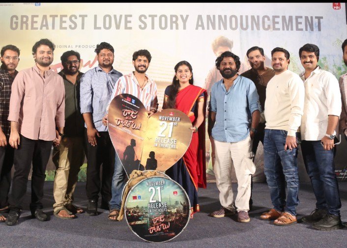 అఖిల్, తేజస్విని జంటగా నటిస్తున్న సినిమా “రాజు వెడ్స్ రాంబాయి”. ఈ చిత్రాన్ని ఈటీవీ విన్ ఒరిజినల్స్ ప్రొడక్షన్ ప్రేక్షకుల ముందుకు తీసుకొస్తోంది. “రాజు వెడ్స్ రాంబాయి” చిత్రాన్ని డా.నాగేశ్వరరావు పూజారి సమర్పణలో డోలాముఖి సుబల్టర్న్ ఫిలింస్, మాన్ సూన్స్ టేల్స్ బ్యానర్స్ పై వేణు ఊడుగుల, రాహుల్ మోపిదేవి నిర్మిస్తున్నారు. సాయిలు కంపాటి దర్శకత్వం వహిస్తున్నారు. నవంబర్ 21న “రాజు వెడ్స్ రాంబాయి” సినిమాను వంశీ నందిపాటి ఎంటర్ టైన్ మెంట్స్, బన్నీ వాస్ వర్క్స్ బ్యానర్స్ పై వంశీ నందిపాటి, బన్నీ వాస్ గ్రాండ్ థియేట్రికల్ రిలీజ్ కు తీసుకొస్తున్నారు. ఈ రోజు హైదరాబాద్ లో ఈ చిత్ర రిలీజ్ డేట్ అనౌన్స్ మెంట్ ఈవెంట్ ఘనంగా జరిగింది. ఈ కార్యక్రమంలో