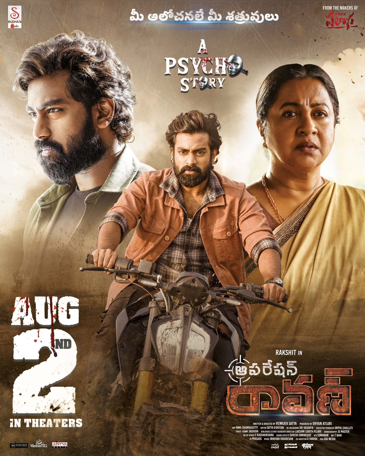 The poster released during the release date announcement of “Operation Raavan” was captioned as “A Psycho Story.” This poster, featuring an action sequence with hero Rakshit Atluri, is generating interest. Radhika Sarath Kumar, Charan Raj, and Tamil actor Vidya Sagar are playing other important roles in the movie “Operation Raavan.” The movie team is confident about its success.