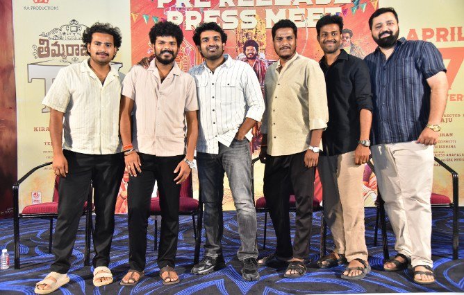 న్యూ టాలెంట్ ను ఎంకరేజ్ చేస్తూ హీరో కిరణ్ అబ్బవరం సుమైర స్టూడియోస్ తో కలిసి తన కేఏ ప్రొడక్షన్స్ పై నిర్మిస్తున్న సినిమా “తిమ్మరాజుపల్లి టీవీ”. తేజ వేల్పుచర్ల సహ నిర్మాతగా వ్యవహరిస్తున్నారు. ఈ చిత్రంతో సాయి తేజ్, వేద జలంధర్ హీరో హీరోయిన్స్ గా పరిచయమవుతున్నారు. “తిమ్మరాజుపల్లి టీవీ” చిత్రంతో వి.మునిరాజు దర్శకుడిగా పరిచయమవుతున్నారు. విలేజ్ బ్యాక్ డ్రాప్ లో సాగే పీరియాడిక్ డ్రామాగా రూపొందుతున్న ఈ సినిమా రేపు (ఈ నెల 17న) గ్రాండ్ థియేట్రికల్ రిలీజ్ కు రెడీ అవుతోంది. ఈ రోజు హైదరాబాద్ లో “తిమ్మరాజుపల్లి టీవీ” సినిమా ప్రీ రిలీజ్ ప్రెస్ మీట్ నిర్వహించారు. ఈ కార్యక్రమంలో