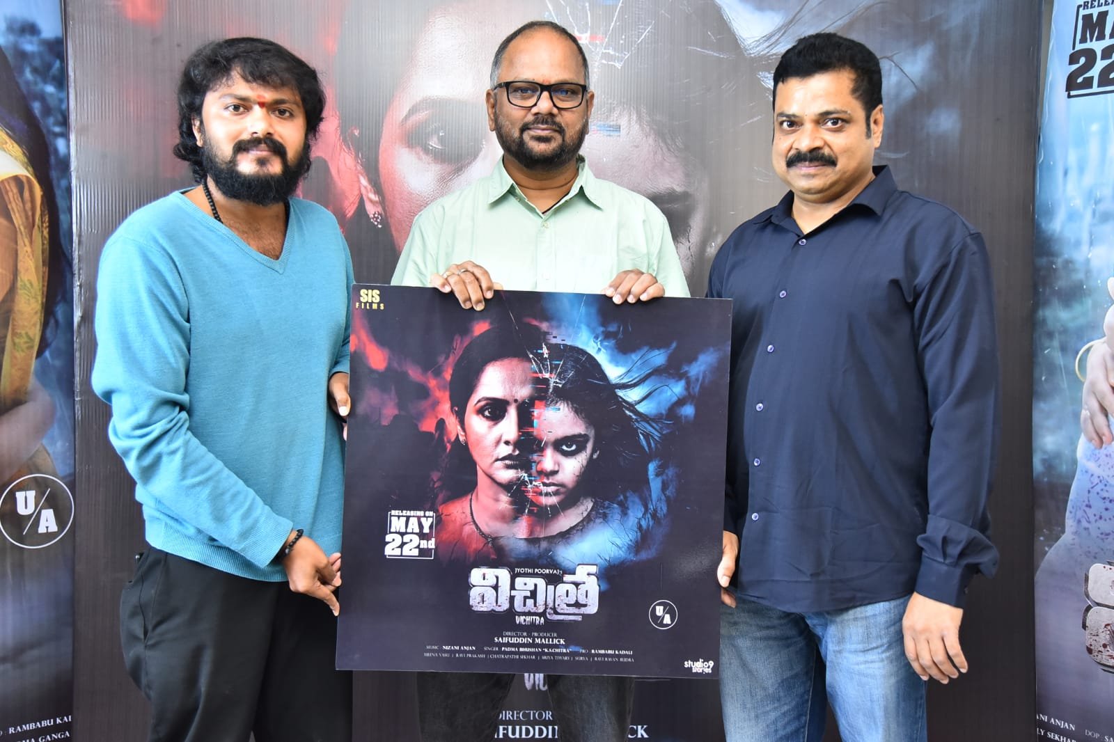 ముందుగా దర్శకుల సంఘం ఎన్నికల్లో అత్యధిక మెజారిటీ గెలుపొందిన వి.ఎన్ ఆదిత్య గారికి ముందుగా హృదయ పూర్వక అభినందనలు తెలిపారు, పోస్టర్ రిలీజ్ కు విచ్చేసిన దర్శకులు వి.ఎన్ ఆదిత్య గారికి ప్రత్యేక ధన్యవాదాలు, మా విచిత్ర సినీమా చాలా బాగా వచ్చింది..వచ్చే నెల ప్రేక్షకుల ముందుకు వస్తుంది..మీ అందరి సపోర్ట్ కావాలని కోరారు.